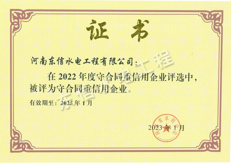 河南東信水電工程有限成立于2013年3月19日,位于新鄉(xiāng)市華蘭大道金博城1號樓。注冊資本金4120萬元,下設(shè)綜合辦公室、合同科、設(shè)備科、質(zhì)檢科、安全科、施工科、計劃信息科,即六科一室機構(gòu)健全。公司現(xiàn)有職工131人,其中有職稱的工程技術(shù)及經(jīng)濟管理人員43人(工程類高 級職稱1人,工程類中級職稱19人,經(jīng)濟師1人,會計師2人)。公司擁有各類工程施工機器設(shè)備74臺/套,機械設(shè)備總功率2238千瓦,可以滿足水電站、橋梁、堤防、大壩、交通、給水、排水、燃氣、環(huán)衛(wèi)、供電、通信、防災(zāi)等水利水電工程的施工需要。