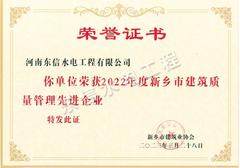 品質(zhì)鑄就精品。河南東信水電工程有限公司在未來歲月的征程里定會始終以“更高的管理、更高的技術(shù)、更高的質(zhì)量、更高的速度、更高的服務(wù)”,為業(yè)主奉獻更多的精品工程,為**建設(shè)做出更加積極的貢獻。在建設(shè)和諧社會的偉大征途上,堅持科學(xué)發(fā)展觀,致力于和諧市場關(guān)系、和諧員工與員工關(guān)系,營造隊伍作風(fēng)好、工作效率高、人文環(huán)境和諧的企業(yè)新形象。將在更加廣泛的領(lǐng)域繼續(xù)與各界朋友真誠合作,互助互利、共同發(fā)展;真誠為廣大用戶服務(wù)并以用戶期望目標為努力方向,共同雕塑無愧于時代的建筑精品,共同創(chuàng)造更加美好的未來。